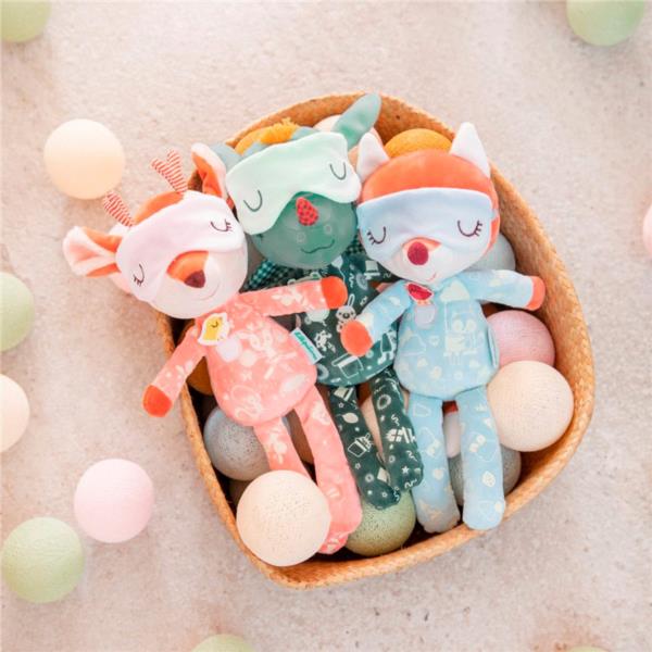 Este muñeco blandito Alice lleva un pijama mágico que brilla en la oscuridad que será la compañía del pequeño dándole tranquilidad. Alice es tan astuta como un zorro. Le gusta la naturaleza y los juegos en grupo. No le importa perder: es feliz cuando ganas tú.