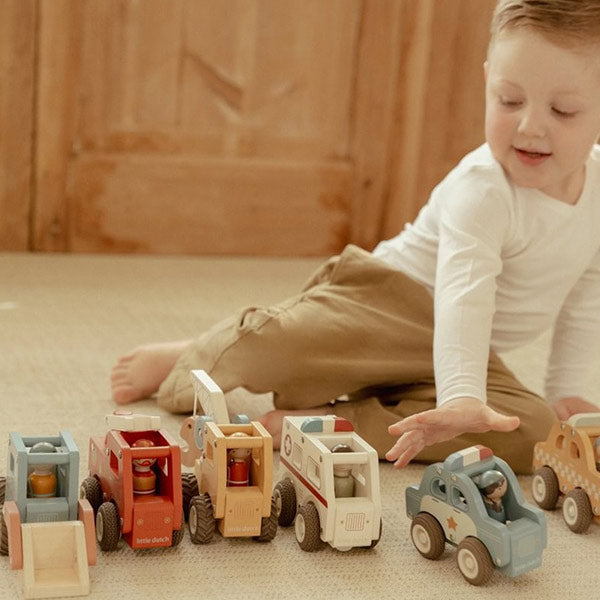 🚑 ¡Sirena encendida, es hora de ayudar! La Ambulancia de Little Dutch es uno de esos coches de juguete que hacen brillar la imaginación. Fabricada en resistente madera, se desliza fácilmente gracias a sus ruedas de goma.