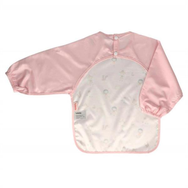 Babero con mangas recubierto de una capa que repele el agua y los líquidos. Lleva botones automáticos traseros para facilitar su uso y puños con goma que los peques coman tranquilos sin mancharse. Su estampado de hadas rosa es ideal y se puede combinar con otros artículos de la misma colección.