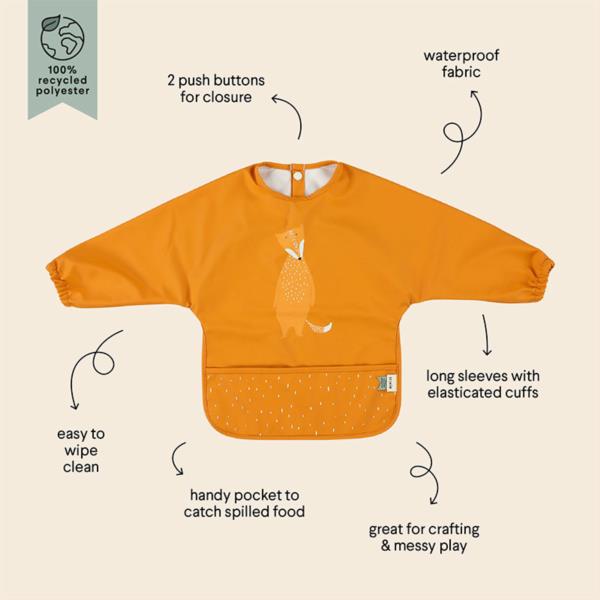 Este alegre babero de Trixie viene con unas prácticas mangas largas y mantiene limpia la ropa del bebé mientras disfruta de una rica comida, bebida o merienda. El práctico bolsillo asegura que todo lo que se caiga quede bien recogido, evitando los grandes desastres.