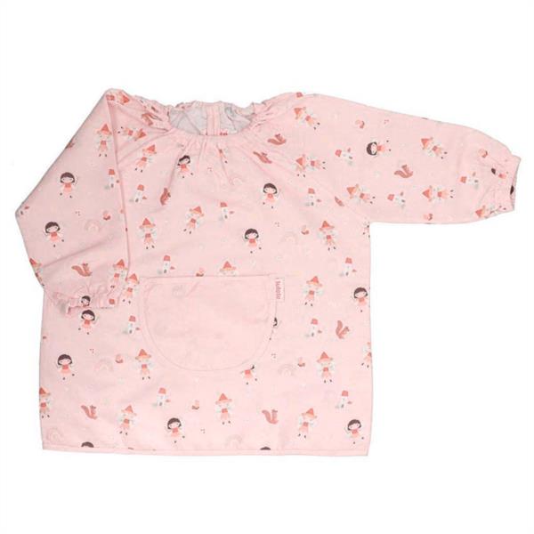 Este babi escolar es perfecto para evitar manchas y dejar que la creatividad de los niños juegue su papel fundamental en su desarrollo. El cuello de goma fruncida hace que poner el babi sea muy sencillo y sus puños también con goma se ajustan a las muñecas de los pequeños para evitar manchas en las mangas de su ropa. La cinta amplia facilita que los niños cuelguen su propio babi fomentando su autonomía. El estampado de hadas wild fairies es ideal y combinable con otros artículos de la colección.