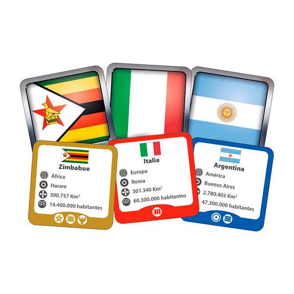 ¡Diversión con banderas! Descubre las banderas del mundo, la capital, población y dimensión de los países, así como el continente en el que se encuentran. Todo mientras te diviertes y desafías a tus amigos. Hay 6 modos de juego diferentes que requieren velocidad, percepción visual, atención y memoria. ¡Ejercita tu mente con un juego de cartas, dados, banderas y países!