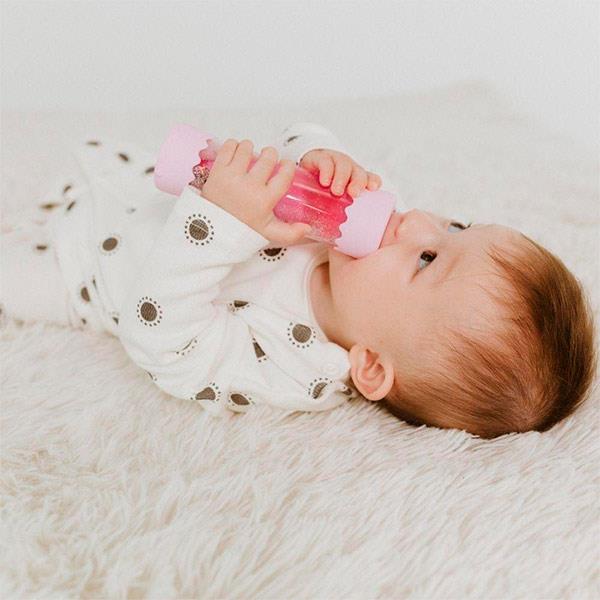 La Botella de la Calma BubbleGum está diseñada especialmente para las pequeñas manos de tu bebé, ofreciendo una experiencia sensorial enriquecedora desde sus primeros momentos de exploración. Sus laterales sellados con suave silicona en color azul, libres de BPA, no solo brindan seguridad, sino que también alivian las encías durante la dentición. Los bebés quedan fascinados con los destellos y brillos en su interior, mientras que el diseño transparente permite observar una sinfonía de colores, formas y texturas que se arremolinan, estimulando su curiosidad y desarrollo sensorial.