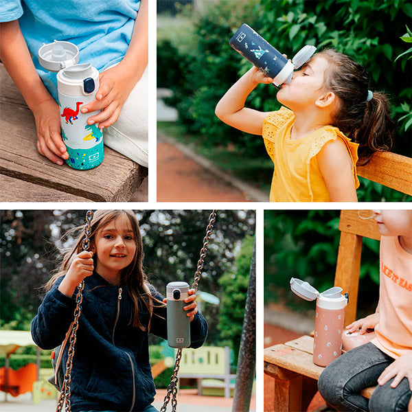 Gracias a su tapón sport con boquilla y botón de seguridad, las botellas de agua infantiles Monbento son fáciles de usar y totalmente seguras. Una opción térmica y resistente, ideal para peques en movimiento.