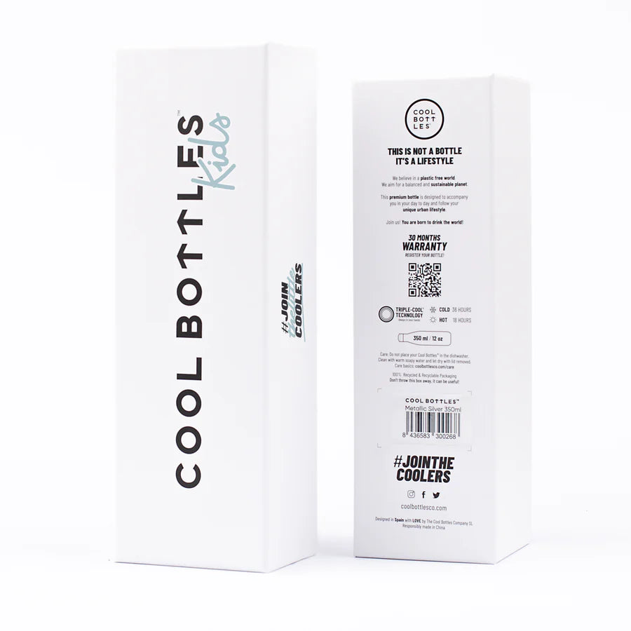 Una nueva versión de botella térmica infantil, dentro de la colección Kids Edition con nuevos modelos con capacidad de 350 ml. Un poco más grandes que las botellas Kids, tienen la misma calidad y llevan los mismos accesorios: tapón con pajita, limpiador de pajita, tapón de rosca y set de pegatinas para personalizar la botella. Gracias a la tecnología exclusiva Triple Cool™ con triple capa, los más peques disfrutarán de bebidas frías durante 36 horas o calientes hasta 18 horas. Viene con dos tapones diferentes y cierre completamente hermético para transportarla en su mochila. Es súper saludable ya que está fabricada con acero inoxidable de grado alimenticio 18/8 de alta calidad y está completamente libre de BPA. Es el mejor material posible, por lo que no retendrá ningún sabor y olor. Además, no genera condensación alguna y no sudará en sus manos.