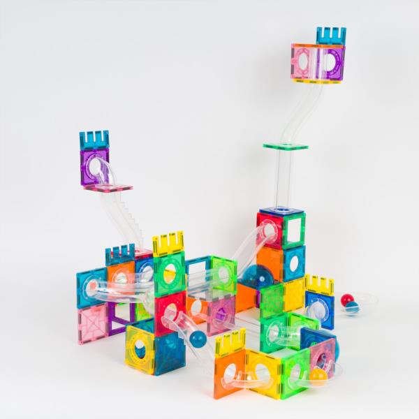 ¡Saca tu yo constructor con la serie Imanix! Estos bloques magnéticos harán que los niños se lo pasen en grande construyendo diferentes estructuras en 3D. Gracias a su sistema de imanes podrán conectar las piezas fácilmente y dar rienda suelta a su imaginación. Este pack 134 piezas fabricadas en plástico no tóxico tiene la particularidad de incluir toboganes para que las bolas recorran un súper circuito ideado por cada niño. Incluye 2 semiesfera, 6 E, 65 cuadrados, 6 bolas, 55 tubos. Dentro de la serie Imanix existen diferentes modelos: toboganes, pista de carreras, trenes, classic.. Descúbrelos todos en nuestra sección «Construcción».