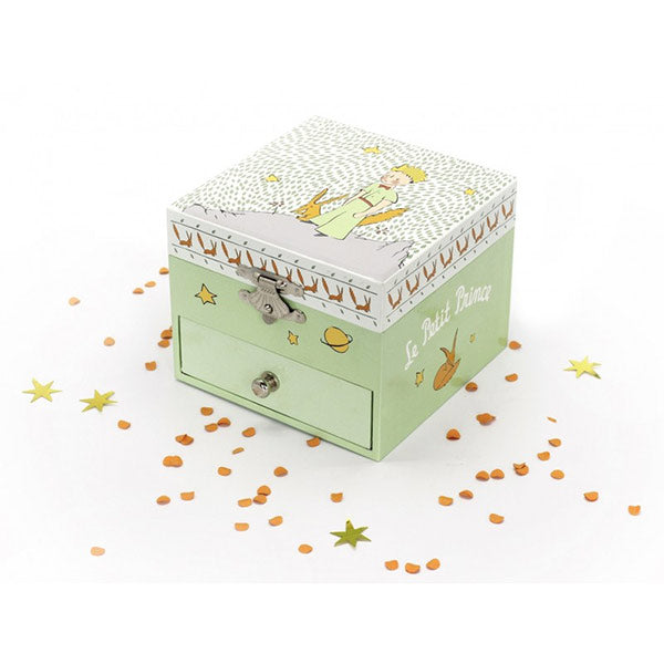 🌟 La magia del Principito llega a la habitación infantil con esta preciosa caja de música para niños. Con forma cúbica, cajón para guardar pequeños tesoros y la figura del Principito girando al son de una dulce melodía 🎶, es un regalo único que despierta la imaginación y acompaña momentos de juego y calma.