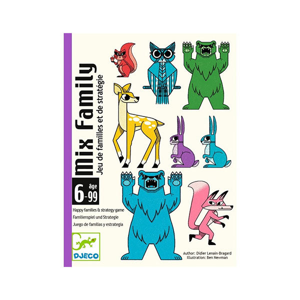 Familias de 3 animales del mismo color o del mismo animal... ¡Qué fácil! ¿O quizás no tanto...? Juego de cartas Mix Family de Djeco, juego de familias un tanto enrevesado. 🧵