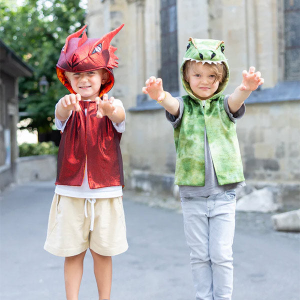 🐉 El Chaleco Dragón Rojo con capucha de Great Pretenders invita a vivir aventuras llenas de fantasía. Ideal para disfraces infantiles, potencia la imaginación, el juego simbólico y la expresión emocional mientras los peques se transforman en valientes dragones.