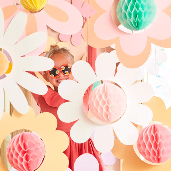 Llena tu celebración de color y alegría con estas decoraciones colgantes de flores Meri Meri, perfectas para crear un ambiente mágico en cumpleaños infantiles, fiestas de primavera o mesas dulces.