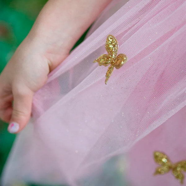 ¡La magia está en el aire! ✨ Con el Disfraz Vestido Mariposa Dorada con Alas Great Pretenders, los peques vivirán aventuras de cuento. Este vestido lleno de brillo y tul rosa es ideal para quienes sueñan con volar y convertirse en mariposas mágicas.