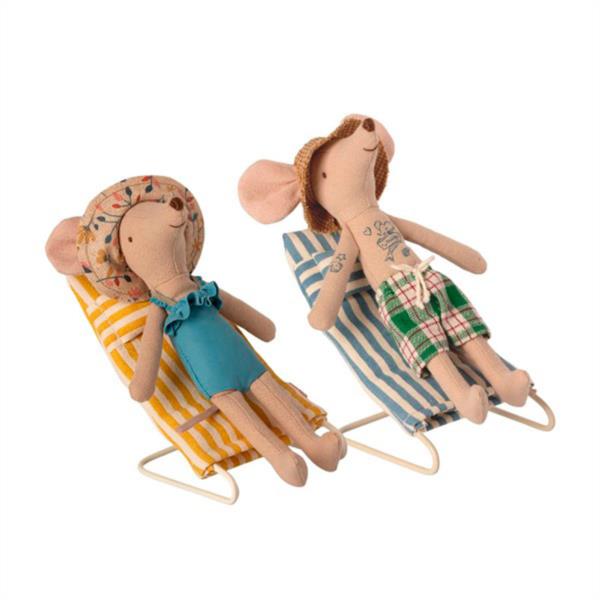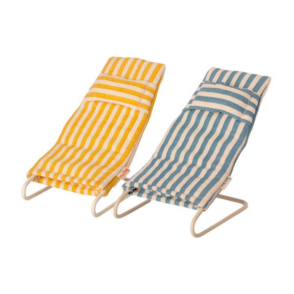 Tiempo de vacaciones. Con estas hermosas sillas de playa a rayas siempre tendrás un asiento perfecto para sus ratones. Para la casa, tienda y colección de muñecos Maileg. Se puede complementar con la colección de ropa Maileg. Ratoncitos No Incluidos. Se venden como referencia independiente.