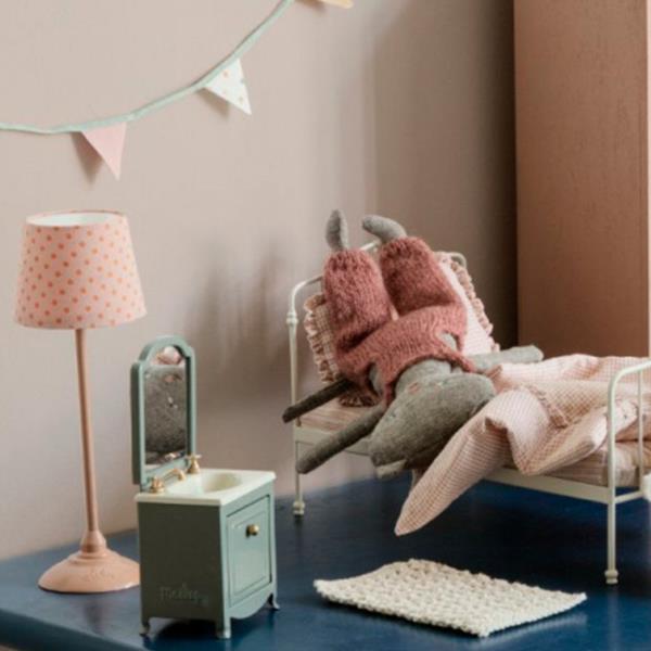 Este lavabo aparador de color menta oscuro es ideal para completar una estancia del castillo de los ratones Maileg. Viene con un espejo donde pueden mirarse y una puertecita para meter sus cosas.