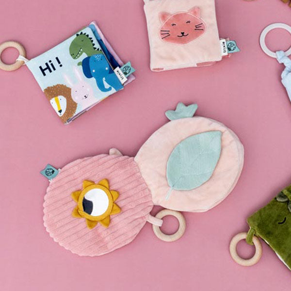 Algodón orgánico - algodón - poliéster reciclado - mordedor - espejo - aro de madera - papel arrugado