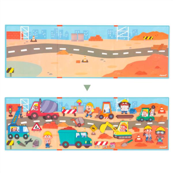 ¡Llegan las historias magnéticas! Las construcciones fascinan a cualquier niño. Ahora puedes jugar con los vehículos de la obra e imaginar una historia repleta de emoción con los imanes de este Magneti Stories de la marca Janod. Diversión dentro de casa y fuera, además de ser perfecto para llevarlo de viaje a cualquier lado.