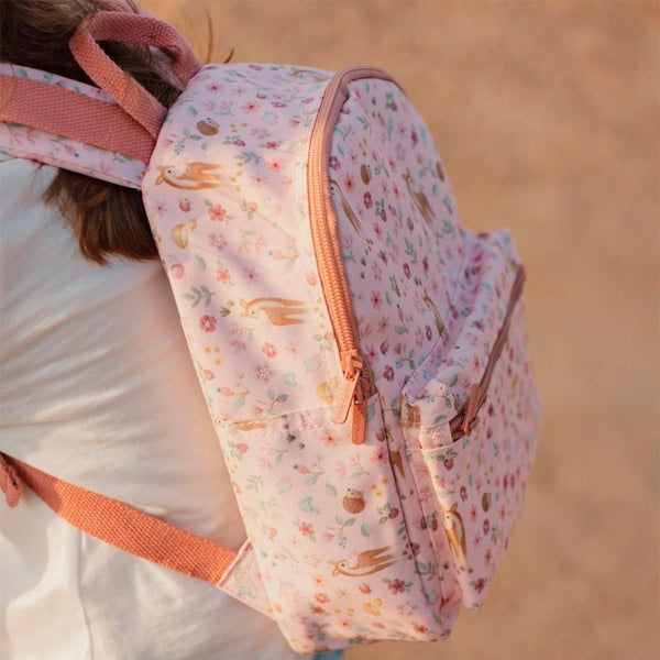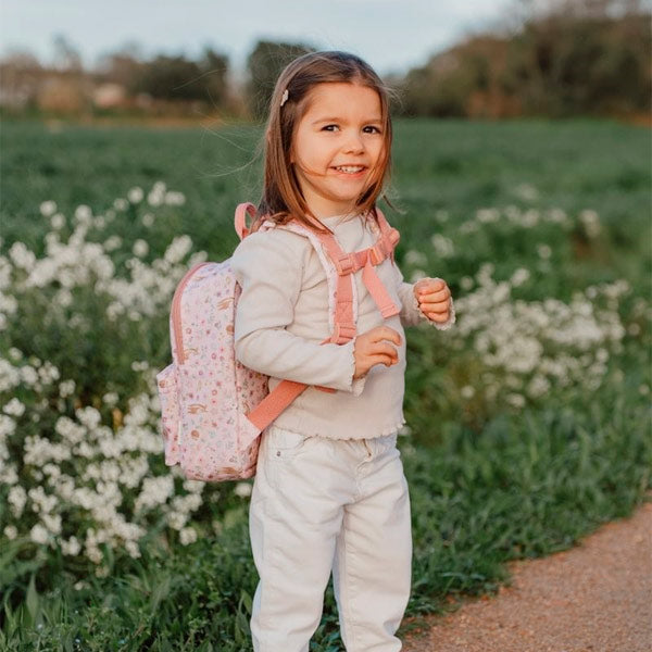 Esta bonita mochila de la colección de Fairy Garden de Little Dutch es ideal para el cole, para divertidas excursiones o incluso para el día a día. Las correas de los hombros son ajustables y se pueden sujetar fijando la correa del pecho.