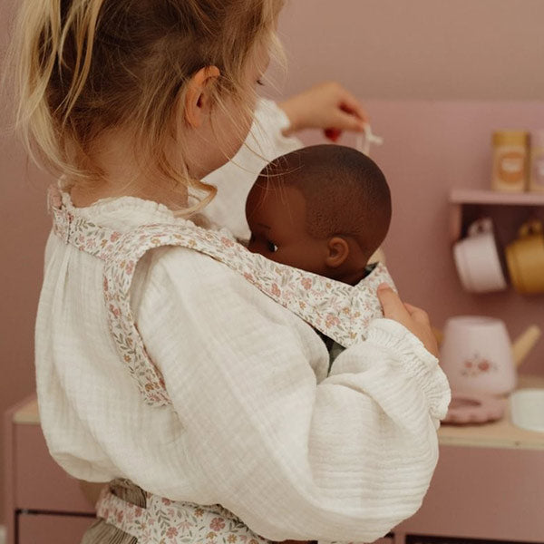 Perfecta para fomentar el juego simbólico y la empatía, esta mochila con el delicado estampado de flores es ideal para acompañar cualquier salida o momento de juego con los mejores accesorios para muñecos de Little Dutch 🌸.