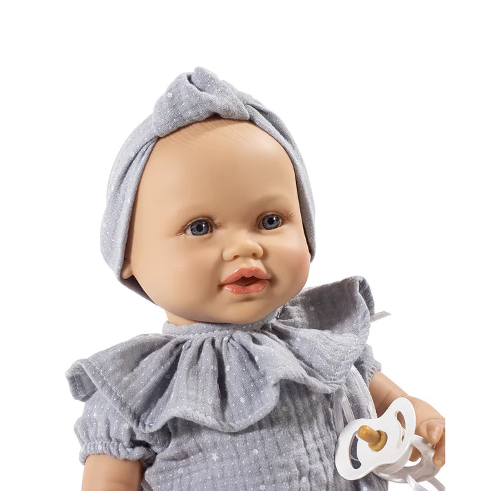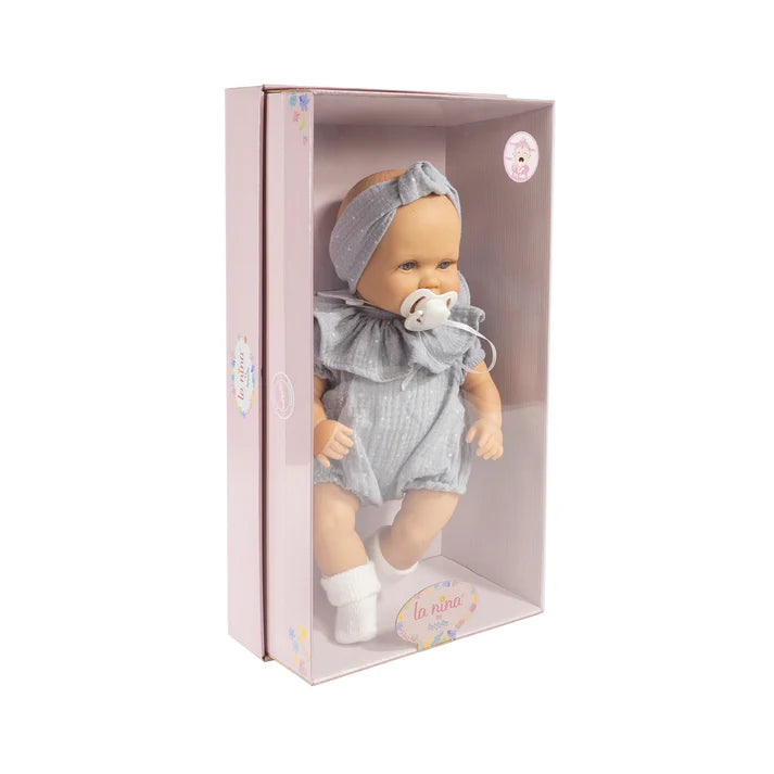 Lucía forma parte de la colección de muñecos de La Nina by Berjuan. Incluye chupete y tiene el cuerpo blando y articulado. Muñeca fabricada en Onil. El juego simbólico fomenta habilidades sociales como la empatía y el lenguaje. Desarrolla la motricidad fina y la imaginación.