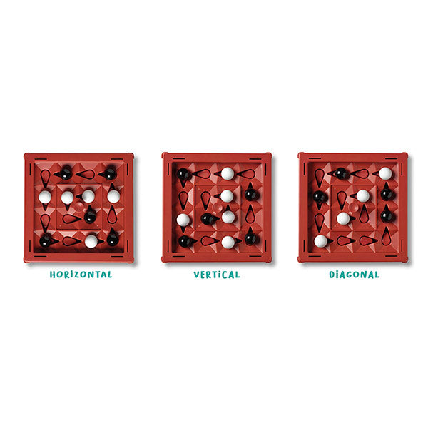 CONTENIDO: 1 tablero de juego (4x4), 8 canicas blancas, 8 canicas negras y 1 instrucciones