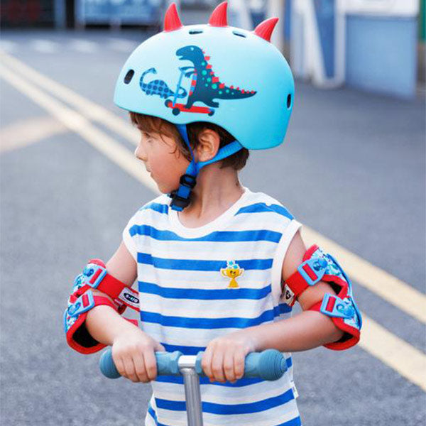 Pack Rodilleras y Coderas Patinetes Micro Dinosaurio Talla S
