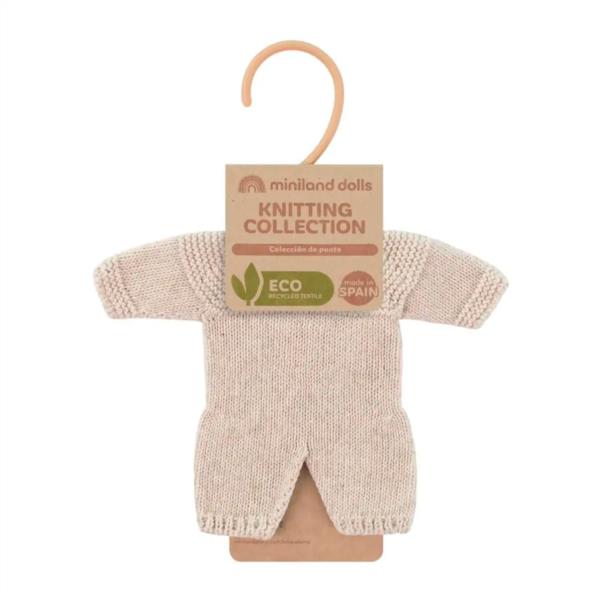 Un pijama de punto para muñecos y muñecas de 21cm, en un bonito color gris. La nueva colección de ropita de punto para muñecos Miniland Dolls de 21cm, está fabricada con materiales reciclados. Todos ellos en tonalidades naturales y con un aire “handmade”. Edad recomendada +3 años