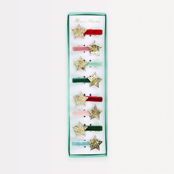 Brilla como una estrella esta Navidad con estos hermosos clips de pelo de Meri Meri. Úselos a todos para un efecto total, o coordine con su ropa de fiesta festiva.