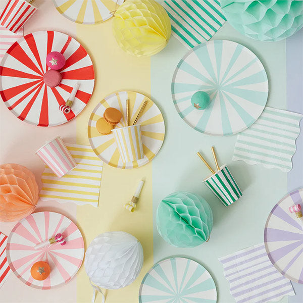 ¿Por qué conformarse con platos lisos cuando puedes tener unas rayas espectaculares? Estos platos de papel a rayas azules y blancas darán un toque vibrante a la mesa de tu fiesta. Son perfectos para baby showers, cumpleaños, picnics, fiestas en el jardín o cualquier ocasión en la que quieras añadir un toque de color.
