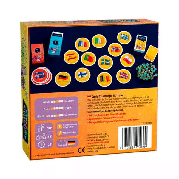¡Un juego de preguntas y respuestas sobre de los países de Europa! Amplia y demuestra tus conocimientos generales del viejo continente. Banderas, capitales, curiosidades... ¡hay mucho por aprender! Por cada respuesta correcta lograrás una ficha. Quien reúna más fichas ¡gana la partida!