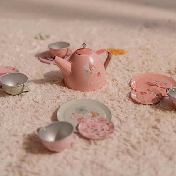 ¿Tomamos el té? Tu hijo disfrutará durante horas de juegos de rol con este simpático juego de té en lata. Este juego de té de Fairy Garden estimula la imaginación de los niños y fomenta la motricidad fina. El juego incluye cuatro tazas de té pequeñas, cuatro platillos, cuatro platos para tartas y una tetera con tapa. Nota: seca bien el juego de té después de usarlo. Empaquetado en una caja con ventana.