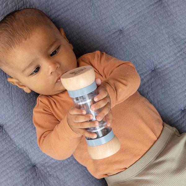 ¡Sacude y traquetea! Dale la vuelta al sonajero de lluvia y las gotas se moverán hacia el otro lado haciendo suaves sonidos de gotas de lluvia. Estimulará el desarrollo sensorial y el talento musical del bebé. Las perlas en 3 colores diferentes caen por el tubo a través de pequeñas aberturas y hacen girar la hélice, dando como resultado un sonido agradable. El sonajero de lluvia está diseñado para manos pequeñas y de fácil agarre.