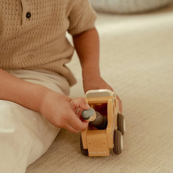 🚕 ¡A toda velocidad con este Taxi de madera de Little Dutch! Los coches de juguete fomentan la imaginación, la motricidad fina y el juego simbólico.