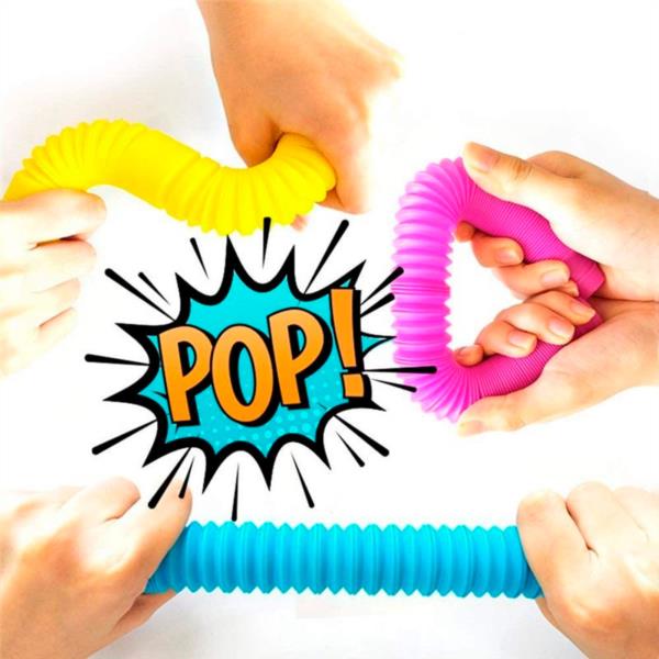 Incluye 8 tubos expandibles de 12 hasta 48 cm cada uno, en 8 colores distintos. Este juego educativo fomenta el desarrollo de habilidades motoras, la coordinación ojo mano y la creatividad en los niños.