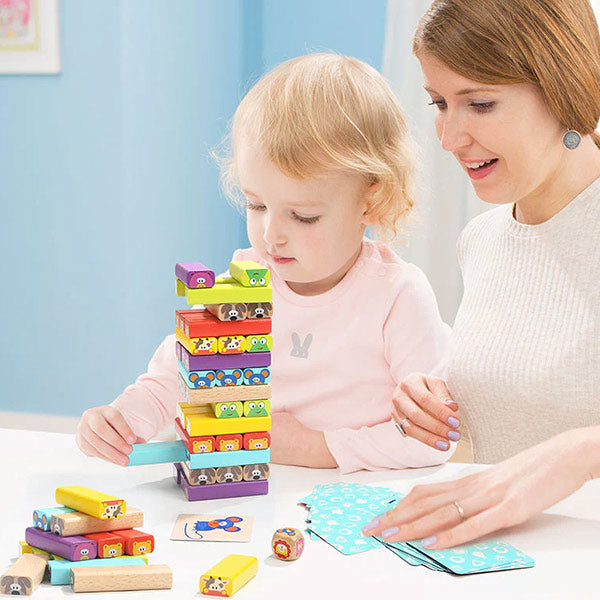 🦒 ¡Diversión y equilibrio en cada jugada! La Torre de Apilamiento TopBright es un juego educativo perfecto para niños y toda la familia. Desarrolla la coordinación, la concentración y la paciencia mientras intentan mantener la torre en pie. Hecha con coloridos bloques de madera, este juego de apilar estimula la motricidad fina y el trabajo en equipo. ¡Un clásico que nunca pasa de moda y garantiza risas aseguradas!