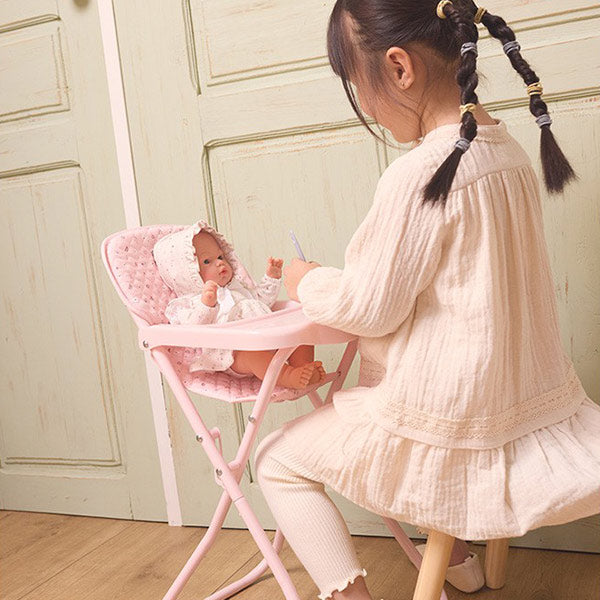 Haz que la hora dar de comer a tus muñecos sea aún más especial con esta preciosa trona plegable para muñecos de Monnëka, ideal para peques que disfrutan imitando las rutinas del día a día. Gracias a su diseño funcional esta trona es perfecta para alimentar a muñecos o peluches con total comodidad.
