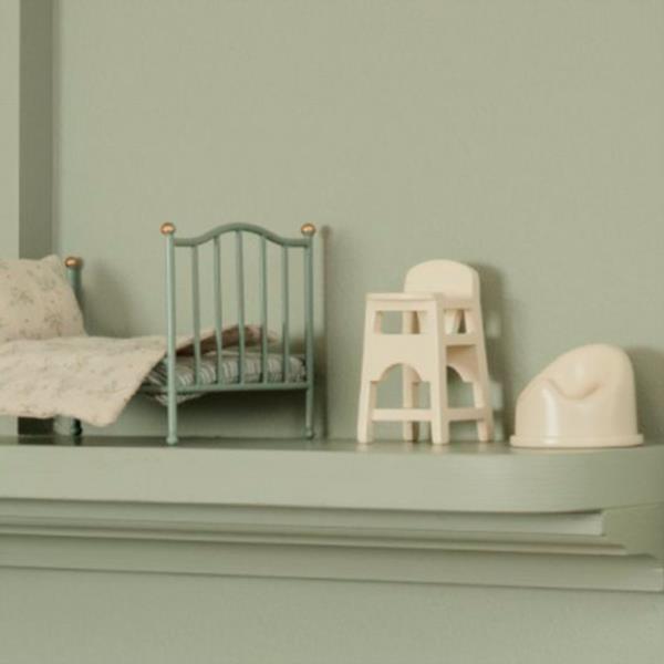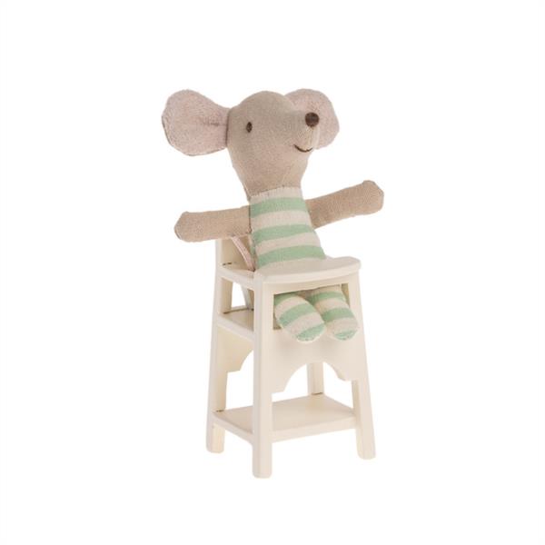 Un accesorio clásico de Maileg. Esta trona es imprescindible para que en todas las familias con bebés los más pequeños puedan participar en las comidas. Se adapta a ratones bebés. Edad recomendada +3 años